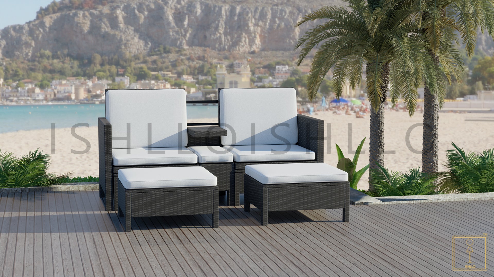 Twin Outdoor single-seat Wicker sofa including footstools